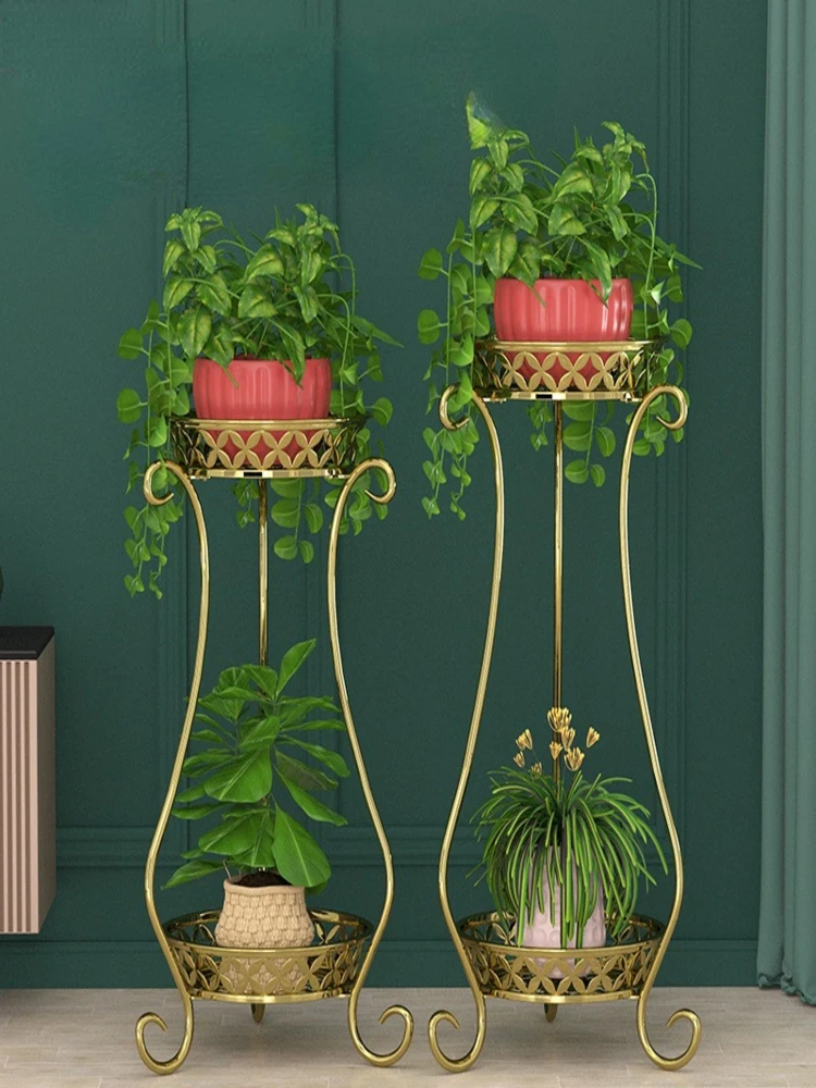 Tongrenyuyi Wrought Iron Flower Pot Stand 4 Layer Plant Stand Suitable For Home Gardening Banquet Display Hall Flower Shop Color Brass Amazon De Garden